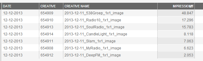 Publishers vergelijken: door technische beperkingen was het nog niet mogelijk om de PLV en PLC te berekenen per publisher/station. De verwachting is dat dat vanaf maart of april wel mogelijk is. Dan wordt het dus ook mogelijk om budget op basis van resultaten her te verdelen tussen de stations/publishers. In december zond het themakanaal Sky Radio Christmas bijvoorbeeld de hele dag kerstmuziek uit. We vermoeden dat luisteraars van dit station voor Greetz een hogere relevantie hebben dan de luisteraars van 538 Dance Department. Binnenkort kunnen we dat gewoon meten.
