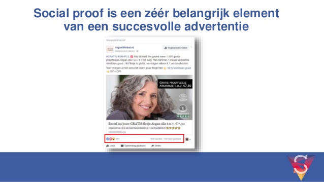 Uit de presentatie van Sybren Smith | Social proof in een Facebook advertentie