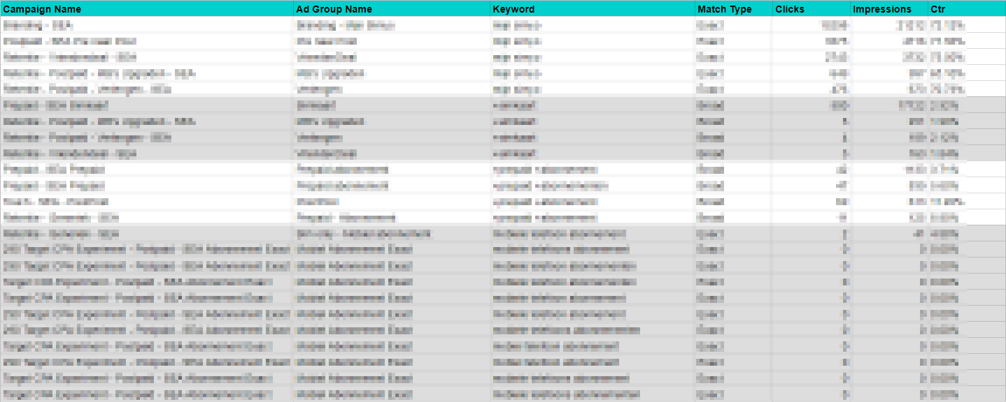 - Om de daadwerkelijke prestaties van een zoekwoord op een bepaalde zoekterm te achterhalen, dien je de metrics van alle (dubbele) zoekwoorden die door deze term zijn getriggerd bij elkaar op te tellen. Dit maakt het managen van je zoekwoorden een stuk ingewikkelder.