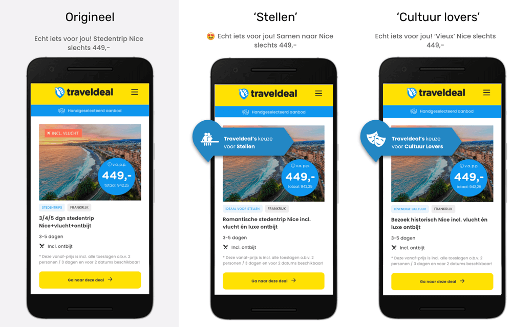 Met een dagelijks veranderend aanbod en scherpe prijzen die urgentie uitstralen, is Traveldeal snel gegroeid. Door de focus op impulsboekingen is de CLTV van een klant bij Traveldeal relatief laag. Nu het aanbod breder en minder impulsief is geworden, wordt personalisatie, de sleutel tot retentie, een grotere uitdaging.