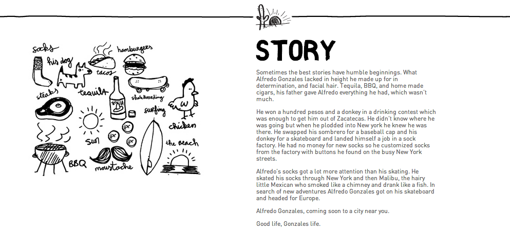 Ook in de marketing is het verhaal van Alfredo leidend. Veel van de uitingen op het blog van het merk, Twitter, Facebook en Instagram gaan niet over het product, maar laden de good life-filosofie van Alfredo. Dennis: “Eigenlijk verkopen we het verhaal van Alfredo, de sokken liften daar op mee. Met elke uitingen schrijven we een nieuw hoofdstuk aan zijn leven.”