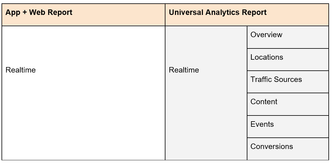 Een groot aantal rapporten die we kennen van UA zijn in de App + Web-reportsectie op een bepaalde (samengevoegde) manier terug te vinden. De rapporten in App + Web zijn daarnaast een stuk visueler ingericht, wat helpt bij het interpreteren van de data.