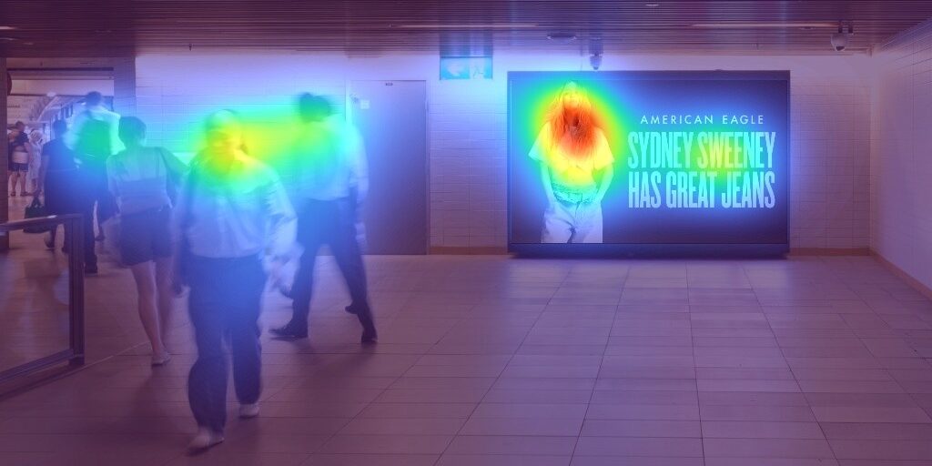 Bij het benchmarken op aandacht van de Sweeney ads in een outdoor (DOOH)- en Social Media omgeving, bleek dat alle creatives middelmatig scoorde: de ads vallen eerder niet dan wel op in hun context.