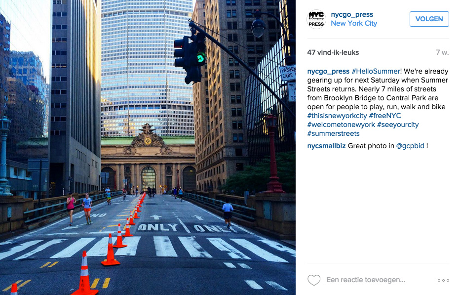 Met deze accounts heeft New York een goed begin gemaakt, maar het lijkt nog niet helemaal te weten wat de richting is, dan wel benut het nog niet ten volle de mogelijkheden. Want, ter vergelijking, het account voor de burgemeester heeft 43k volgers en gebruikt met meer regelmaat hashtags in berichten, maar laat eigenlijk hetzelfde soort posts zien. Bill de Blasio, de burgemeester zelf, heeft daarnaast 12,5k volgers en vertelt een duidelijk eigen verhaal. Er lijkt dus een gemiste mogelijkheid te zijn voor de stad.