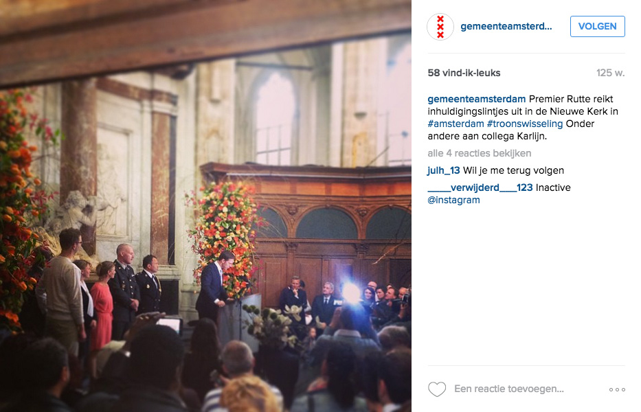 De laatste foto die de gemeente Amsterdam op haar Instagram-account postte, 125 (!!!) weken geleden – bron: Gemeente Amsterdam/Instagram