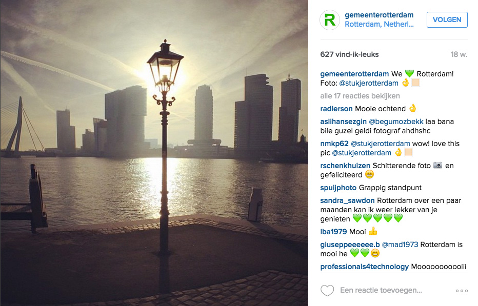 Wat vind jij? Ben je het ermee eens: zie je Amsterdam ook graag op Instagram? Mocht ik je nog niet genoeg overtuigd hebben met de diverse accounts, ideeën en New York als voorbeeld, kijk dan tenslotte eens naar Rotterdam. Met een actief Instagram account vanuit de gemeente Rotterdam kan Amsterdam toch niet achterblijven?