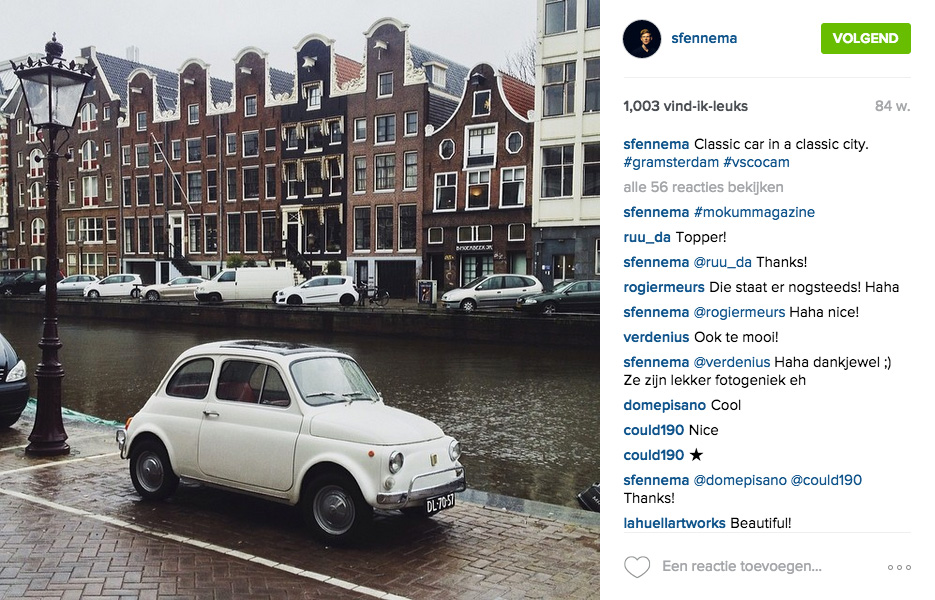 Net als bij New York vinden we daarnaast wel veel andere accounts over Amsterdam. De stad wordt zelfs genoemd als een stad om te volgen als het gaat om stadsfotografie en fotografen om te volgen op Instagram. Kijk bijvoorbeeld eens naar PDY, die prachtige foto’s maakt en 63k volgers heeft. Of naar AT5, dat Instagram gebruikt om mooie foto’s te plaatsen uit de rubriek ‘Gespot’. AT5 plaatst nog te onregelmatig foto’s en heeft een klein account, maar er is wel gekozen voor een duidelijke richting om Instagram te gebruiken en de zender laat hiermee zien dat er mogelijkheden zijn en je simpelweg aan de slag moet!