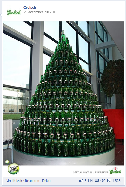Naast de gemiddelde interactie van de pagina’s keken we ook naar de paginaberichten met de hoogste interactie in de afgelopen 12 maanden. Bavaria genereerde met een inhaker op de troonopvolging de meeste interactie (IPM+ van 113), gevolgd door een kerstupdate van Grolsch op 20 december 2012 (IPM+ van 111) en een zonnige update van Amstel Bier op 8 juli (IPM+ van 94). Deze drie berichten tref je hieronder aan. Net als uit een eerdere analyse blijkt hieruit dat foto’s, actualiteit en humor de meeste interactie genereren op Facebook.