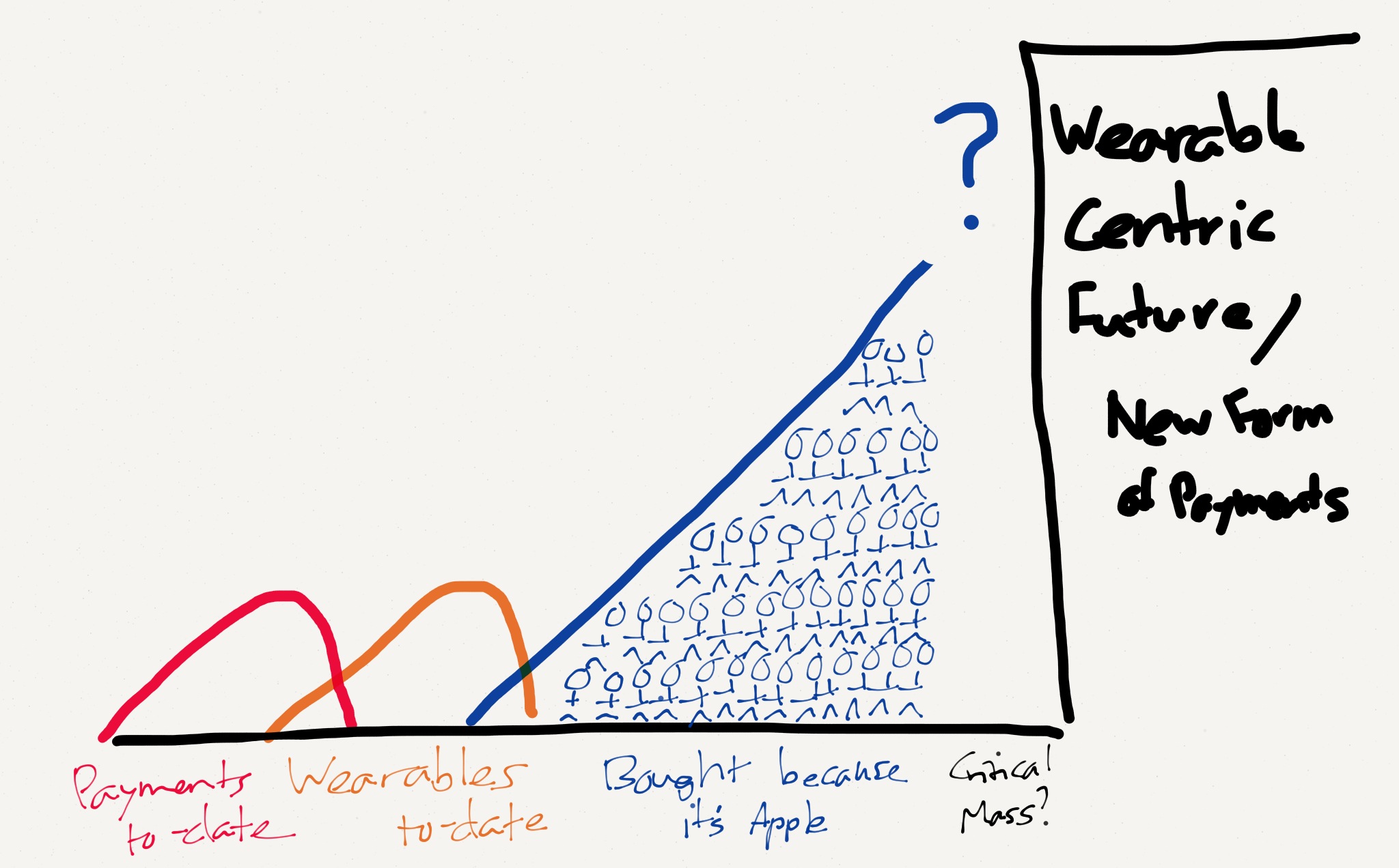 Zal Apple dan slagen waar hun concurrenten zoals Google en Samsung eerder hebben gefaald? Het lijkt er op of Apple het eeuwige kip-eiprobleem omtrent mobiele betalingen heeft opgelost: “Merchants won’t support a new payment method unless lots of valuable customers insist on it, but said customers won’t insist on a particular payment method unless lots of merchants support it.” De populariteit van Apple’s producten (en het daaronder liggende ecosysteem) heeft de potentie om deze nieuwe manier van betalen met een Big Bang door een bepaalde kritische massa te laten adopteren.