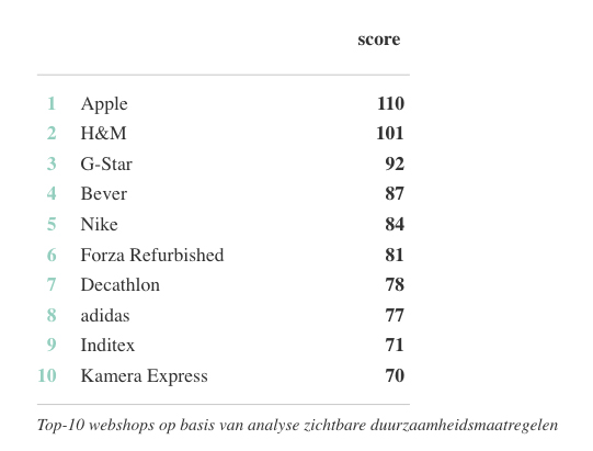 Belangrijk is dat de ranking gebaseerd is op maatregelen die voor de consument zichtbaar zijn. Sommige webwinkels doen mogelijk meer op het gebied van duurzaamheid dan op hun website te zien is, waardoor de werkelijke inspanningen wellicht worden onderschat. Veel webshops bieden nog steeds beperkte informatie over hun duurzame producten, waardoor consumenten actief moeten zoeken naar relevante gegevens.