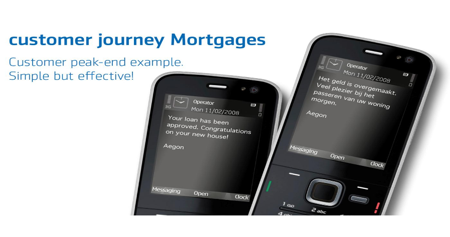 Een dag voor de afspraak bij de notaris stuurt Aegon een sms-bericht waarin staat dat het geld is overgemaakt en wenst Aegon hun klant veel plezier bij het passeren van zijn of haar woning. Rien testte dit proces bij tweehonderd mensen, waarvan honderd het sms-bericht wel ontvingen en honderd mensen niet. Na drie maanden bleek de NPS 27 punten hoger te liggen bij de mensen die een persoonlijk bericht van Aegon ontvingen in vergelijking met de mensen die dat niet kregen. De conclusie van Rien: “We hebben veel technologie die ons faciliteert om in contact te komen met klanten. Maar begin altijd bij de needs van je klant door te luisteren, te leren en te verbeteren en pas daar je kanalen op aan.”