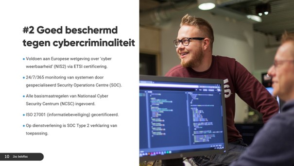 Ook hierbij is de stelregel dat we onze beweringen onderbouwen met concrete bewijslast. Dit is bijvoorbeeld een van de pagina’s uit onze verkooppresentatie/offerte: