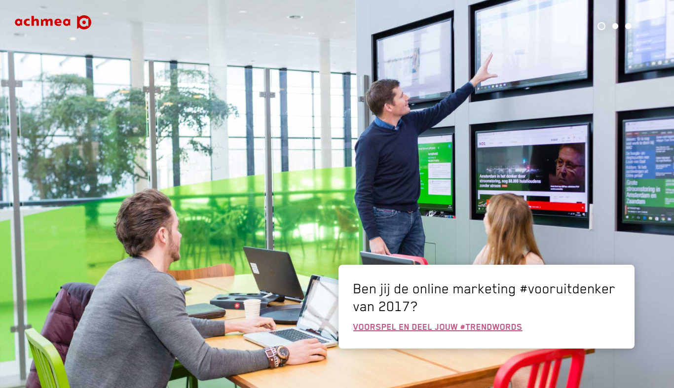 - Kies de 3 trendwords waarvan jij de hoogste verwachtingen hebt. Dat doe je op de Achmea Trendwords Challenge-website.