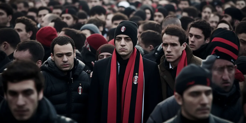 Onder de verzamelde menigte zijn er ook fans van AC Milan, trouw in hun teamkleuren. Ze zijn hier om de man te herdenken die ooit president was van hun geliefde voetbalclub.