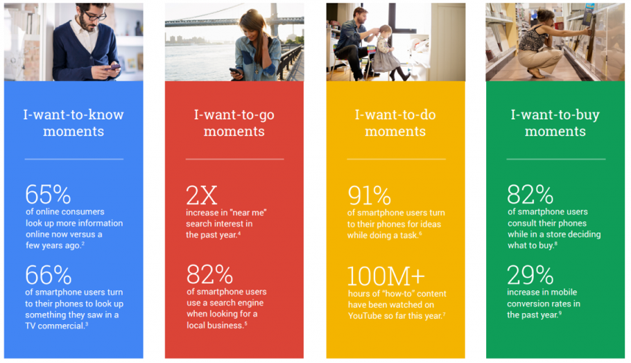 Is een app voor jou belangrijk, dan is het een goed idee om eerst vast te stellen hoe die past binnen de customer journey van je klant en daar je campagnes op in te richten. Google heeft daarvoor het ‘micro moments’-model: