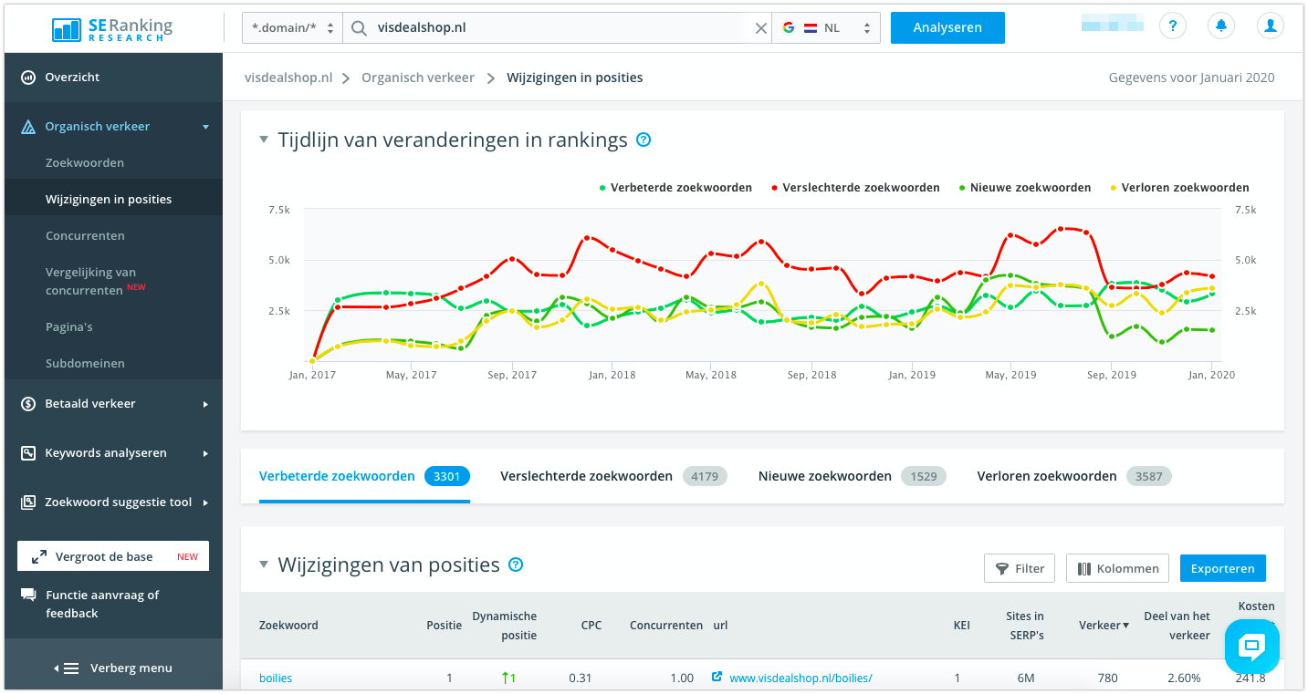 Nogmaals, ik ben gewend om SE Ranking te gebruiken en ik vind hun interface overzichtelijk. Ik weet zeker dat wennen aan SEMrush en Ahrefs slechts een kwestie van tijd is, maar afgaande op de hoeveelheid beschikbare gegevens en prijs is SE Ranking wat mij betreft de winnaar aangaande de gegevens die het voor Nederland levert.