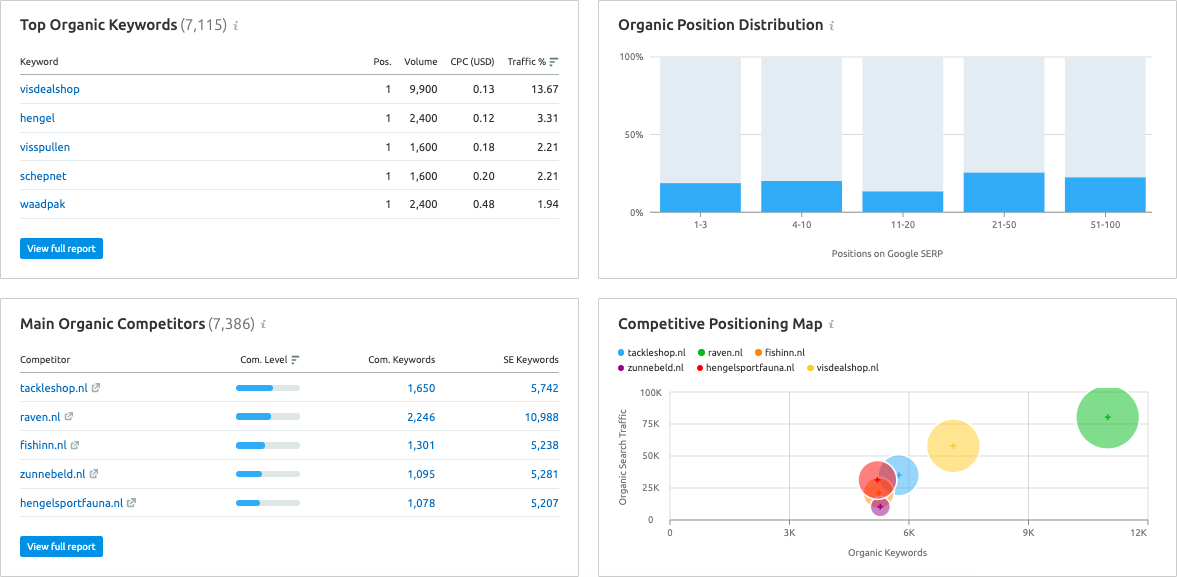 Ik werd echter onlangs gevraagd om de markt voor de hengelsport in Nederland te analyseren. Dat leek me een geweldige kans om verschillende grote SEO-tools zoals SEMrush en Ahrefs te vergelijken met SE Ranking en zo uit te vinden welke het beste is voor het uitvoeren van concurrentieanalyses in Nederland.