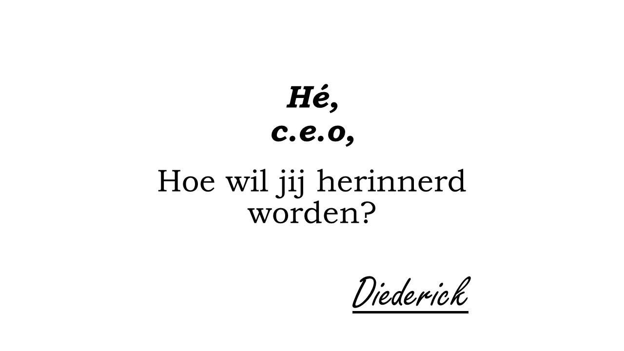 Merkstrateeg Diederick Janssens heeft een missie: ook professionele organisaties hebben vrienden nodig, om gehoord, gezien, gewaardeerd en gesteund te worden. Wil je volgers als bedrijf, dan moet je socialer worden. Wil je fans, dan zinniger. Voor vrienden moet je menselijk zijn. Daarom schrijft hij wekelijks een persoonlijke brief aan een bedrijf of instantie, om hun marketing en non-verbale communicatie te spiegelen aan sociaal en menselijk gedrag. De vraag aan elke organisatie: kunnen we vrienden worden?