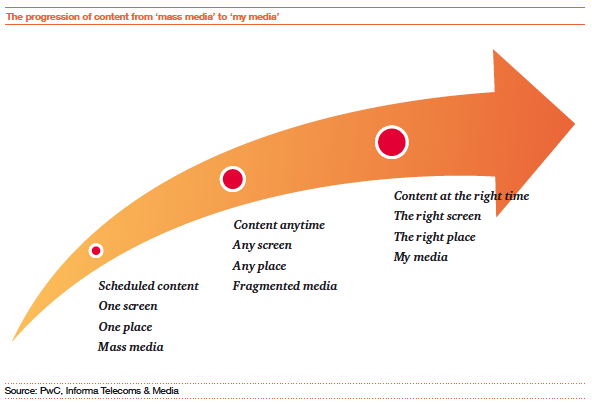 De trend dat consumenten in toenemende mate gebruik maken van digitale media en mobiele apparaten zet voort. Een onderliggende beweging is de transitie van broadcast media naar persoonlijke media. PwC stelt in haar rapport dan ook dat bedrijven die de snelheid, flexibiliteit en inzichten hebben om consumenten te betrekken en te moneytizen zullen zegevieren, met als resultaat gepersonaliseerde en relevante klantervaringen.