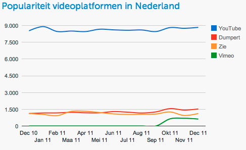 Het videozusje van Geenstijl, Dumpert, heeft goede zaken gedaan in 2011. De site groeide van 1,1 miljoen unieke bezoekers in december 2010 naar 1,5 miljoen in 2011, een toename van 36%. Daarmee is Dumpert het videoplatform van Nu.nl, Zie.nl, voorbijgestreefd. Het bezoek aan Zie.nl bleef in 2011 relatief gelijk. De invloed van het re-design van Dumpert in november is niet of nauwelijks terug te zien in de cijfers. Gelijk aan de trend van de markt daalt het bezoek in november, waarna het in december weer aantrekt.
