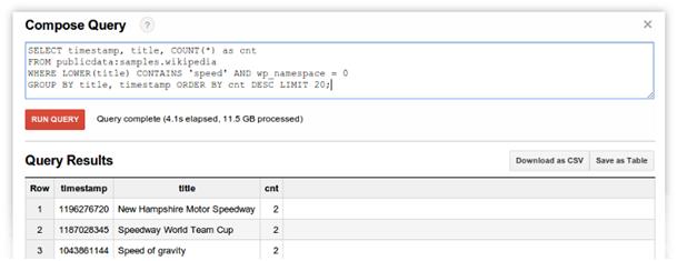 Met Google BigQuery Service kun je SQL-achtige queries maken voor het bewerken en analyseren van zeer grote datasets. Het is mogelijk miljarden rijen in de query te betrekken en is dus niet voor niets BigQuery voor Big Data.