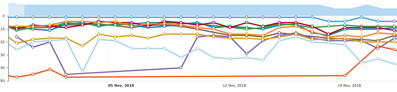 Helaas waren de resultaten niet zoals verwacht. De posities fluctueerden wel wat, maar lang niet zo heftig als in bovenstaande grafiek.