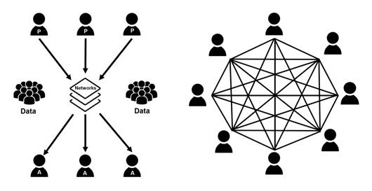 Traditional Ad Network vs. Distributed Ad Network (bron: Roel van Rijsewijk, Deloitte)