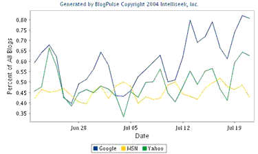 Maak je eigen trendgrafieken met de BlogPulse Trend Tool. BlogPulse is een geautomatiseerde trendanalyse tool voor weblogs en weblogportalen en is vergelijkbaar met de buzz-o-meter.