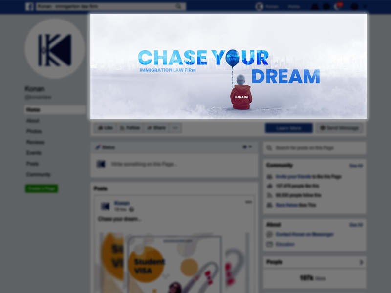 De horizontale afbeelding, die als het bovenste gedeelte van het profiel dient, moet in harmonie met de profielfoto zijn. In de klassieke versie wordt het logo in de profielfoto gebruikt en staat de slogan op de omslag. Het belangrijkste is om je aan één stijl en één kleurenschema te houden.