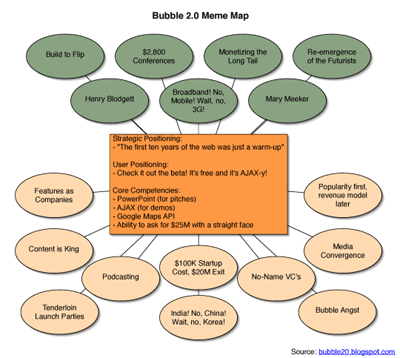 Een aardige parodie op de originele web 2.0 meme map (via: bubble20.blogspot.com).