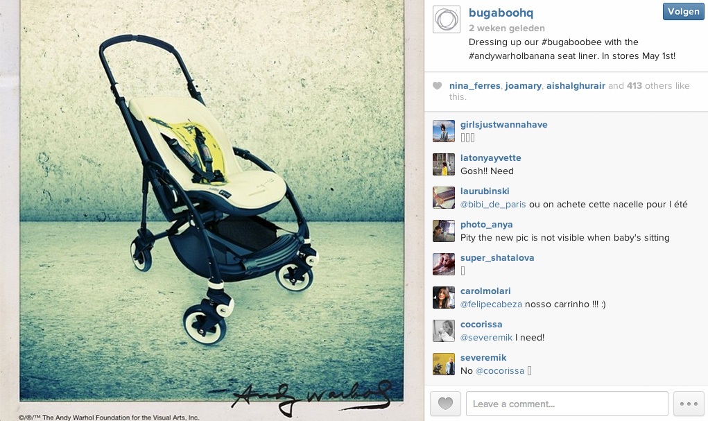 Waar Bugaboo ook een enorme groei ziet, is op Instagram. Martijn benoemt Instagram als een belangrijke trend voor Bugaboo: “We zien er steeds meer mensen gebruik van maken, waardoor het dus ook een steeds belangrijker kanaal voor ons wordt. De doelgroep beslist tenslotte. Een productaankondiging heeft nu soms zelfs meer bereik op Instagram dan op Facebook.” Toch betekent dit niet dat Facebook tot het verleden behoort. Martijn: “Vooralsnog blijft Facebook ons grootste touchpoint met 100k fans. Die community willen we ook nog verder ontwikkelen.