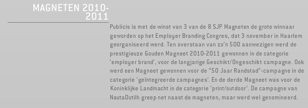 Oh wacht, dat waren de magneten 2010-2011 en het is natuurlijk al 2012… Overigens is er op de hele site ook hier geen vacature te vinden, dus 'lead the change' (hun pay-off) is in ieder geval niet gericht op nieuwe medewerkers.