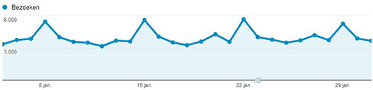 In bovenstaande screenshot uit Google Analytics zie je wat de nieuwsbrief doet met het gemiddelde aantal bezoekers op mijn site. Wanneer ik dinsdagochtend de nieuwsbrief verstuur, veroorzaakt dat een piek van zo'n 1.500 a 2.000 extra bezoekers op die dag. Bezoekers die er niet waren geweest als ik geen nieuwsbrief verstuurd had. Ook de dagen na het versturen van een nieuwsbrief (vaak zelfs tot weken later) krijg ik nog bezoekers binnen vanuit elke afzonderlijke nieuwsbrief. Gemiddeld zo'n twee tot drieduizend per nieuwsbrief.