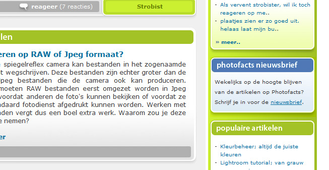 Hierboven zie je hoe de nieuwsbrief in eerst instantie op mijn site onder de aandacht werd gebracht; na wat scrollen was er in de sidebar een korte melding met een doorlink naar een pagina waarop je jezelf kon inschrijven. Dit was duidelijk niet de juiste manier om veel inschrijvingen te krijgen.