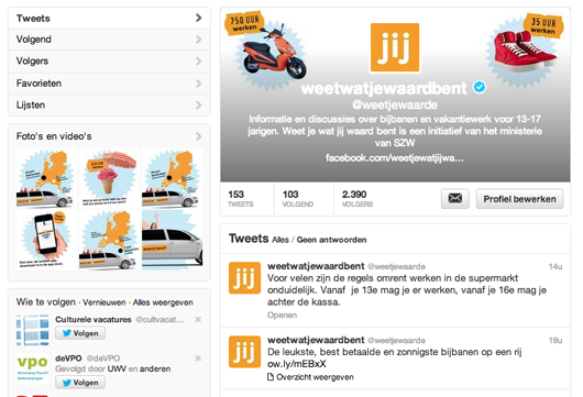 Jongeren weten precies waarvoor ze werken en sparen. Toch blijken ze vaak geen enkel idee te hebben van hun eigen rechten en plichten. Ieder jaar lanceert het ministerie van Sociale Zaken en Werkgelegenheid een campagne om jongeren tussen de 13 en 17 jaar hierover te informeren. Zes van de tien jongeren hebben een bijbaantje of vakantiebaan. Uit onderzoek van het ministerie blijkt dat veel jongeren niet weten wat het minimumloon is en niet weten hoeveel ze horen te verdienen. Ook weten ze niet hoe lang ze mogen werken en wat ze wel of niet mogen doen. Het is dus belangrijk om deze informatie wel bij de doelgroep terecht te laten komen.