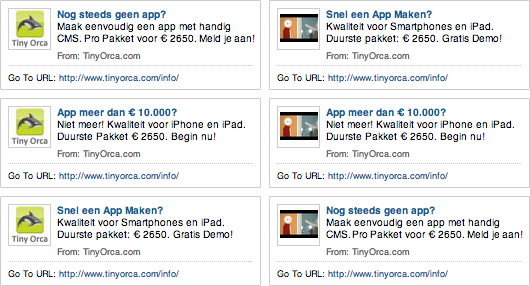 De advertentieteksten passen we voorlopig niet aan, hiervoor vertonen de CTR’s nog te weinig verschillen.