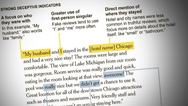 Op dit vlak biedt linguistische analyse in de toekomst mogelijk uitkomst. Dit onderzoek van de Universiteit van Illinois boekte recent vooruitgang op dit vlak. “Although labeling individual fake reviews and reviewers is very hard, to our surprise labeling fake reviewer groups is much easier,” zo schrijven de auteurs.