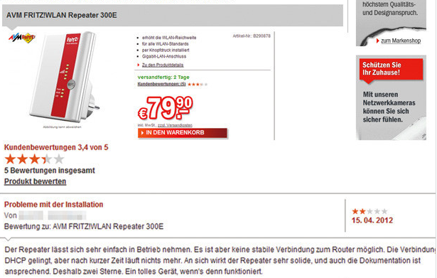 Op voorhand kunnen webwinkels vrij weinig beginnen tegen valse beoordelingen. Veelal heb je aan een e-mailadres genoeg om je aan te melden en er is geen controle op het invoeren van fictieve gebruikersgegevens. Online winkels, zoals Otto, Redcoon, Saturn en notebooksbilliger.de wekken de indruk dat zij beoordelingen checken voor publicatie. Dit blijkt een farce. Na een wachttijd van 24 tot 48 uur verschenen alle fictieve recensies keurig op de website. Dit is ook niet verwonderlijk: alleen al op otto.de verschijnen per dag 2.500 nieuwe reviews. Bij marktleider Amazon is het vermoedelijk een paar duizend meer.