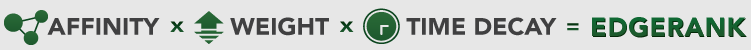 De EdgeRank bestaat uit 3 componenten: affiniteit, gewicht en een tijdscomponent. De affiniteit drukt de relatie van de gebruiker tot een statusupdate uit. Het gewicht wordt bepaald door het type object. Zo is het gewicht van een foto anders dan een video, link of tekstupdate. De tijdscomponent geeft een lagere waarde aan objecten die relatief oud zijn.