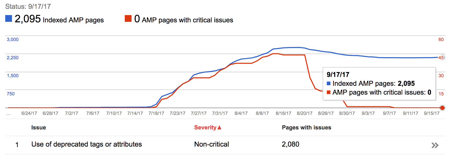 Google Search Console heeft een aantal specifieke AMP-rapporten die ons verder helpen bij het oplossen van fouten in de code.