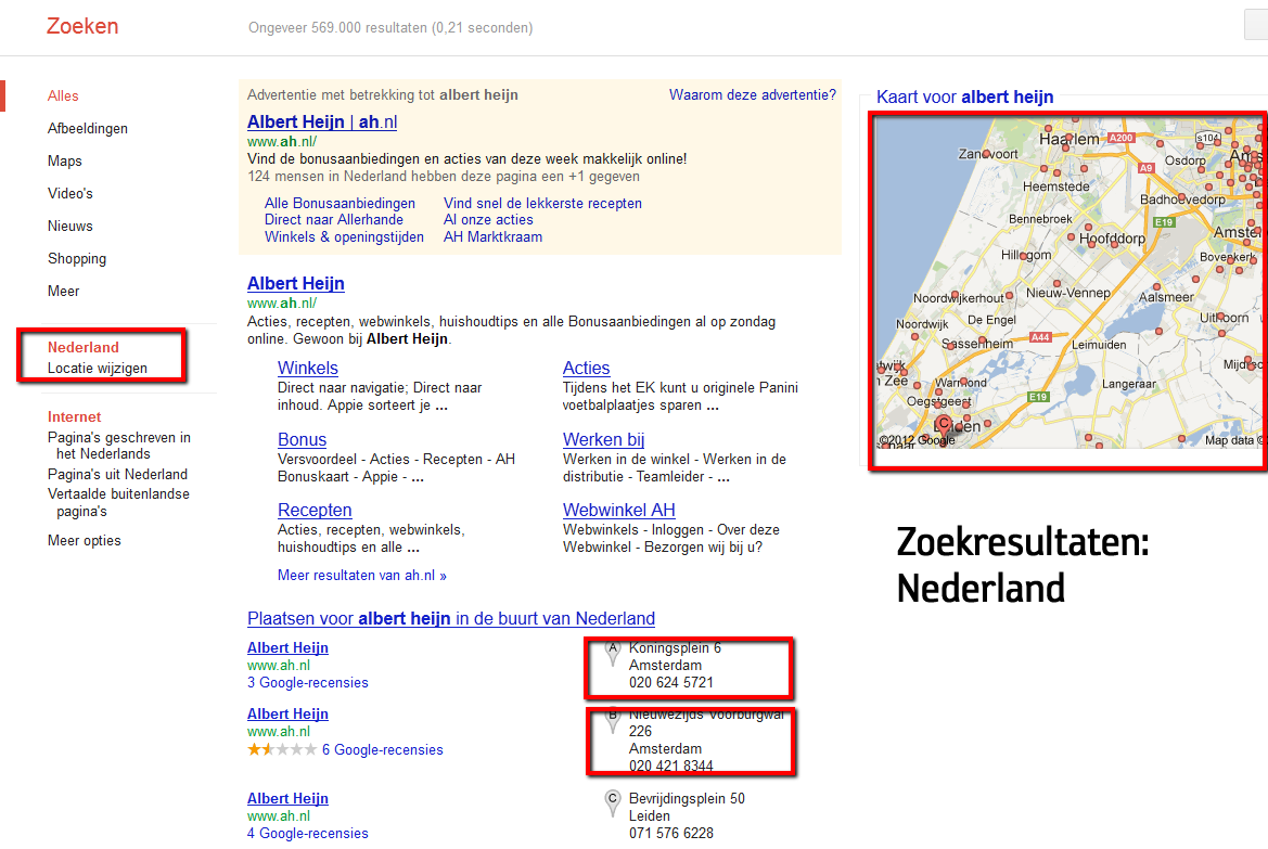Google is continu aan het veranderen en het tonen van geografische resultaten is daarvan een erg belangrijk onderdeel. De resultaten worden namelijk, wanneer dit bij Google bekend is, automatisch afgestemd op de locatie waar je je begeeft. Voor veel ondernemingen is dit een mooi moment om eens goed naar online en dan met name de lokaal-georiënteerde resultaten te kijken.