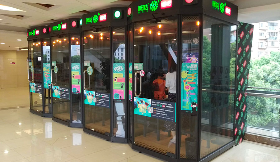 In winkelcentra kan je karaoke-cabines scannen voor een sessie. De cabines weten al wie je bent, dus je kan oude nummers ophalen en nieuwe nummers opslaan, en zelfs ‘live’ uitzenden als je dat wil.