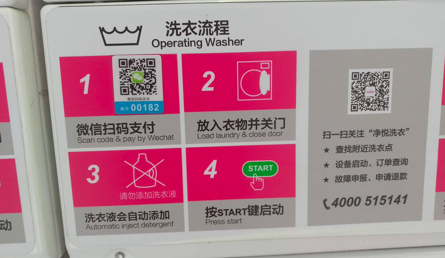Het voelt als science fiction wanneer je de QR-code van een wasmachine in een wasserette kan scannen via WeChat. Elke machine heeft een unieke QR, dus weet de app welke je gebruikt.