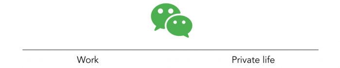 Maar zo’n onderscheid bestaat niet in China. WeChat wordt overal voor gebruikt, thuis en op werk. Alles is adaptief, in plaats van gecategoriseerd.