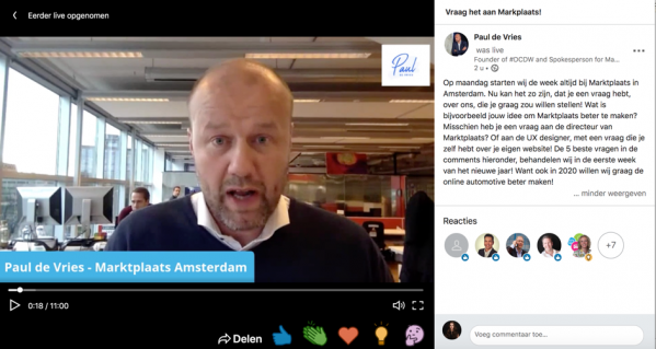 Werk je aan een nieuwe dienst of nieuw product? Dan kun je cocreatie inzetten op LinkedIn. Hiermee betrek je de mensen bij jouw product of dienst en zorg je tevens voor (online) ambassadeurs. Heb je geen nieuw product of geen nieuwe dienst? Dan kun je nog steeds je netwerk inschakelen om ze mee te laten denken. Zojuist zag ik onderstaande livestream van Paul de Vries (spokesperson Marktplaats) waarin hij oproept Marktplaats beter te maken.
