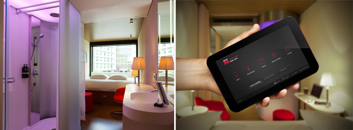 Alle hotelkamers zijn identiek en hebben een tablet waarmee alles in de kamer kan worden bediend. Er is sfeerverlichting in elke kleur van de regenboog, gratis wifi, gratis films en een muziekselectie van het Nederlandse DJ-collectief 22tracks.