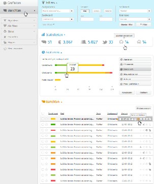 Statistieken relevant voor webcare zijn; Meest actieve auteurs in combinatie met sentiment, sentimenttrend en sentiment over het merk in een bepaalde periode.