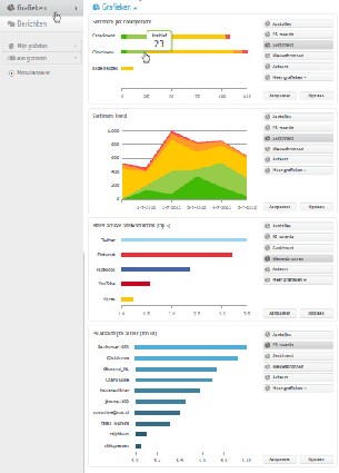 Het online dashboard is beschikbaar op mobile devices. Hier kunnen berichten worden bekeken, geopend, de sentimentanalyse wordt weergegeven. Grafieken en statistieken zijn niet zichtbaar voor de dedicated mobiele website, maar wel te bekijken op een tablet.