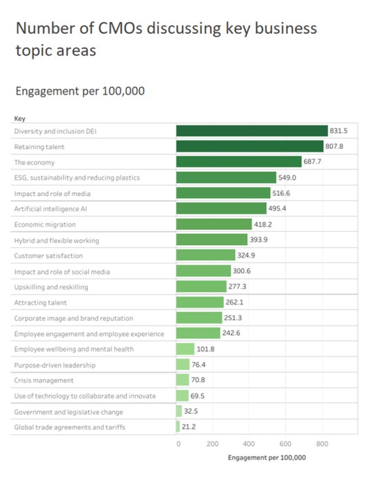 Engagement – The number of CEOs and CMOs talking about the topics on social media. Engagement values are calculated by using data from the last 12 months.