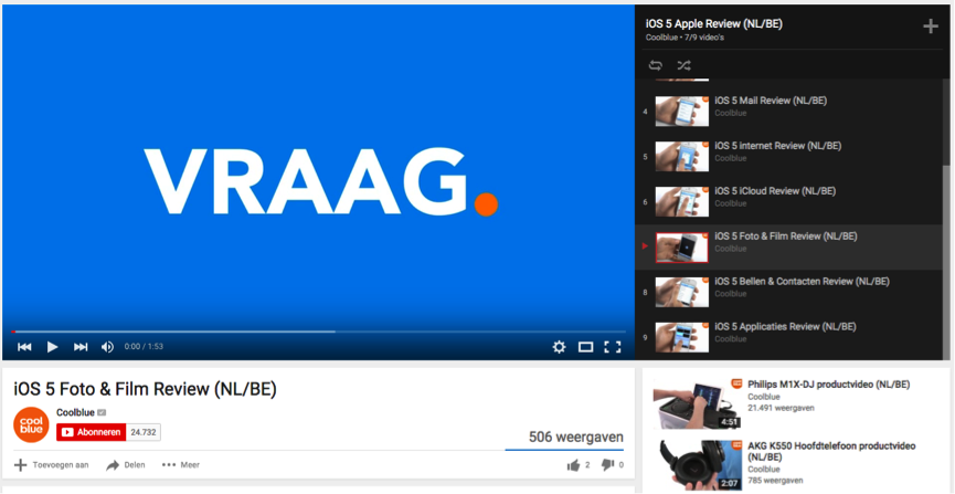 Coolblue geeft hierin het goede voorbeeld. Met productfilmpjes helpt ze haar huidige klanten om het aangekochte product zo snel en gemakkelijk mogelijk te kunnen gebruiken en vragen over producten te beantwoorden. Ze laat hiermee zien dat ze ook na de verkoop van haar product haar klanten nog van dienst wil zijn.